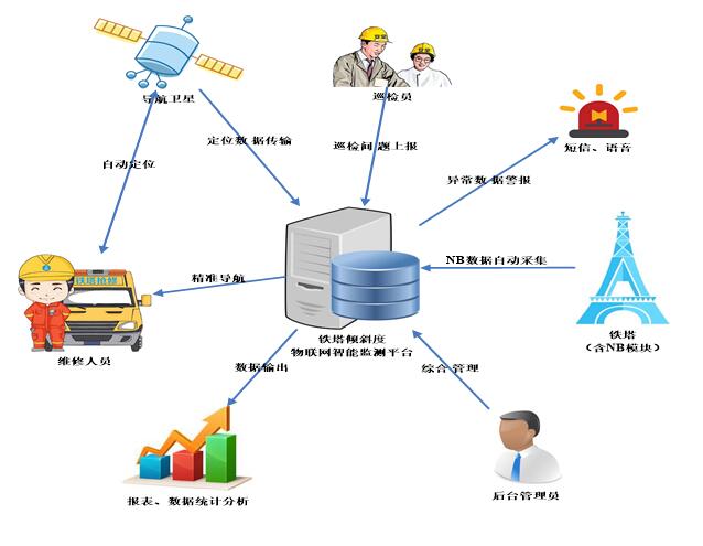 铁塔倾斜度物联网智能监测平台利用先进高效的物联网技术,将铁塔倾斜度的实时数据传输到后端监测平台上,并推送给到相关的工作人员移动终端上。通过对倾斜度数据的动态监测和趋势分析以及设置告警阀值,多方式告警,工作人员即可在第一时间发现铁塔的潜在风险,并在最短的时间内消除隐患,最大程度的保障铁塔安全稳固,减少运营商和人民群众的财产损失。
